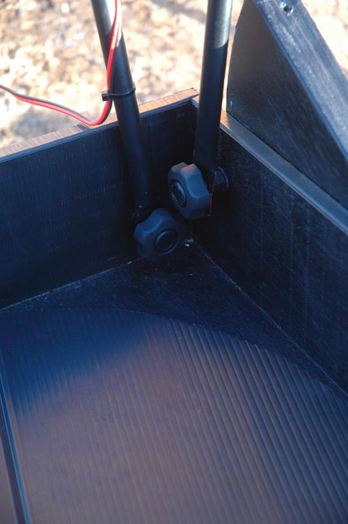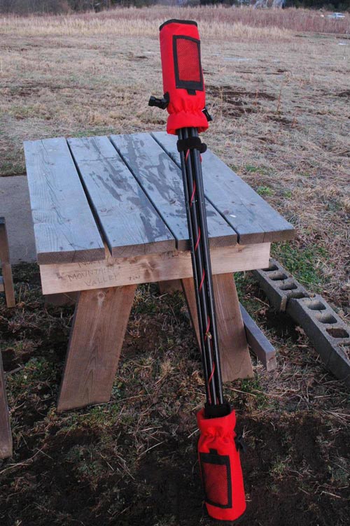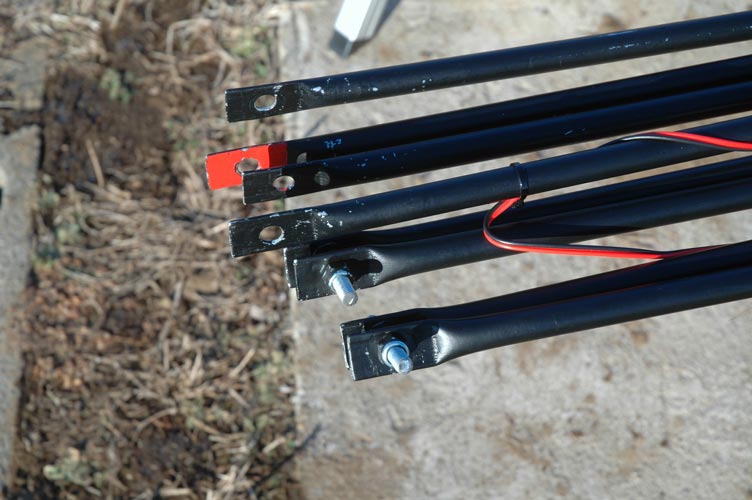 またアルミパイプの端を潰し、穴を開けて取り付け部分としています。