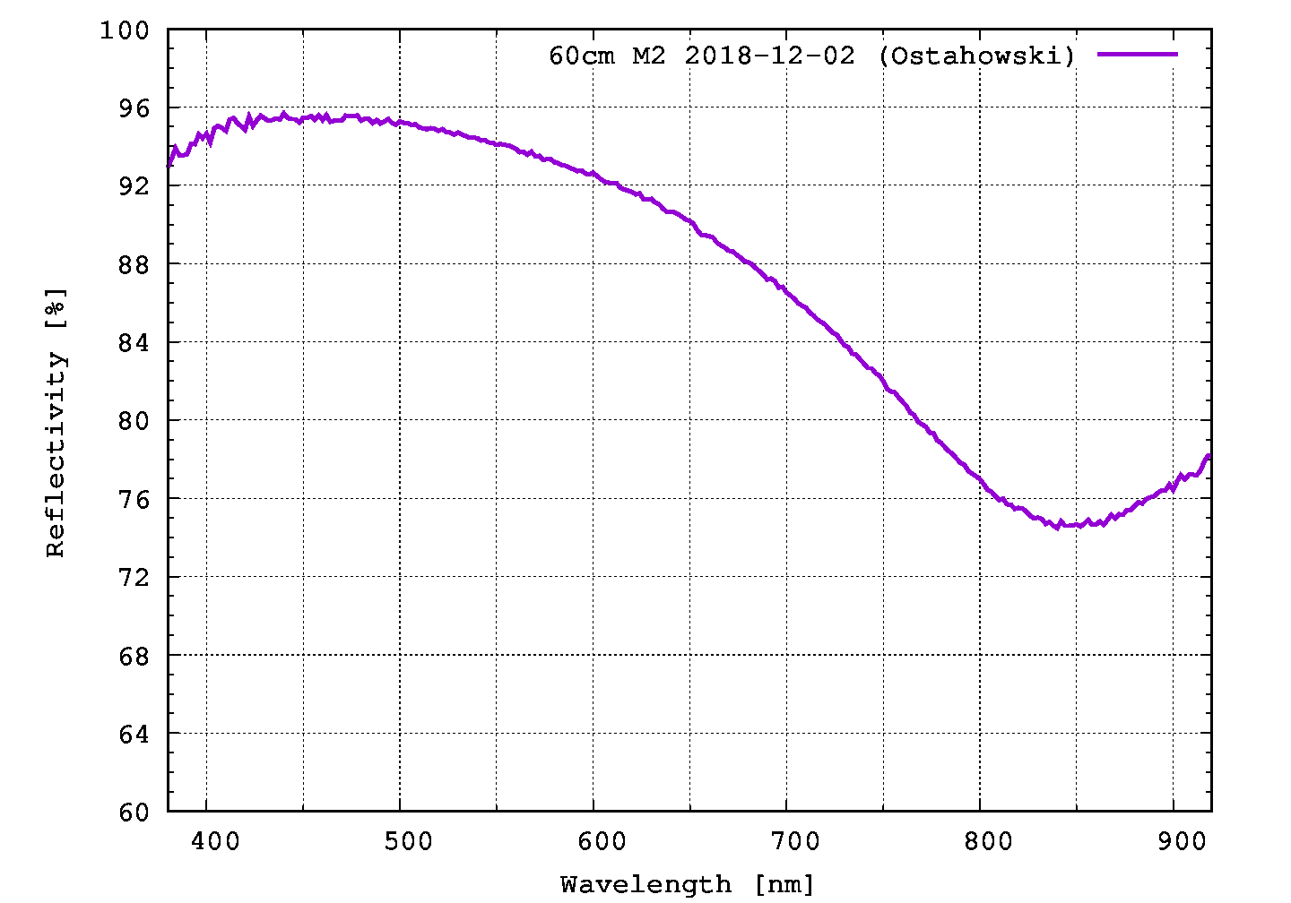 | 主鏡反射率 | 94% @500 nm (2020年3月3日) |