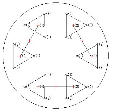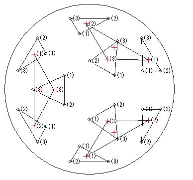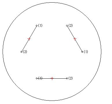 そこで自作60cmドブソニアン計画では「45度離れた円周上の4点支持」という方法で主鏡の側面を支えることを考えます。 この方法では主鏡が左右方向に動いてしまうことはないので使用中に光軸が狂うこともないはずです。 たわみ量自体も180度円周支持とほぼ同等です。