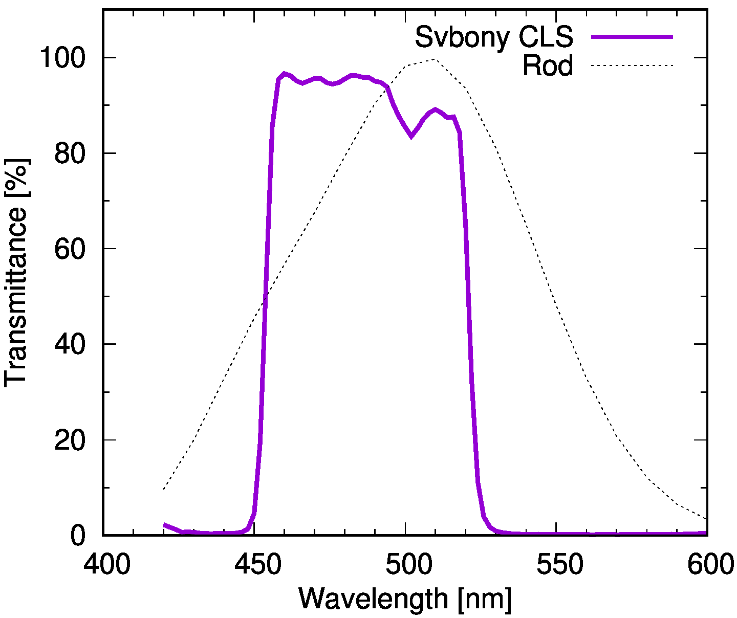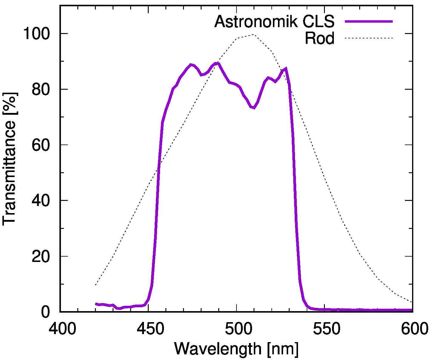 | Astronomik CLS | 494nm | 78nm | 89% | ![]() |