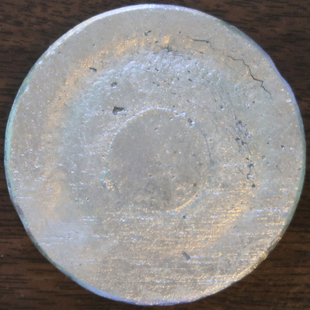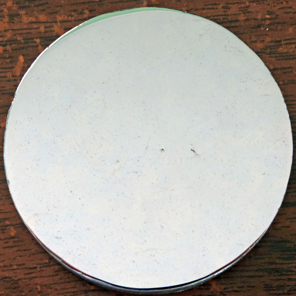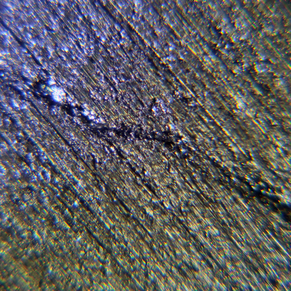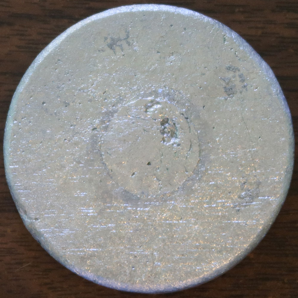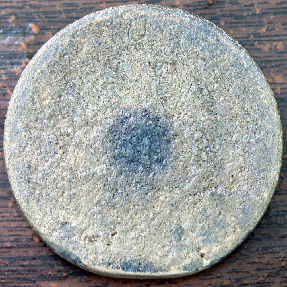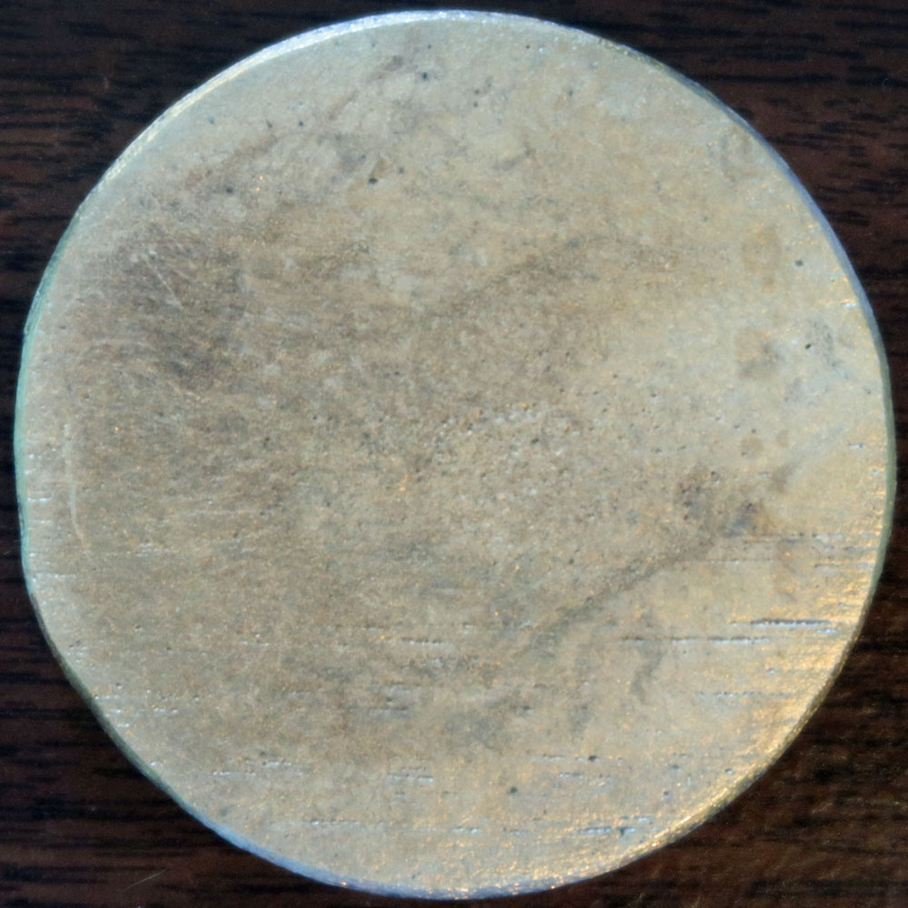 錫 35.1%、銅 64.9% #48 国友一貫斎の金属鏡 揚がり湯面が10mm程度陥没して穴 硬くて脆いが加工性は悪くない、0.3mmぐらいの赤い錆びのような模様、金属 |