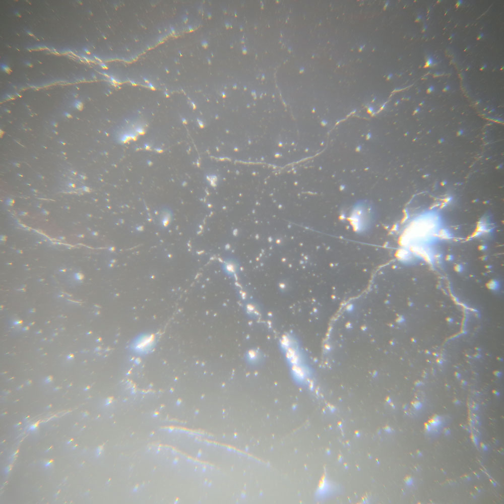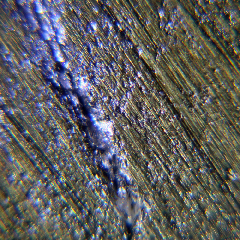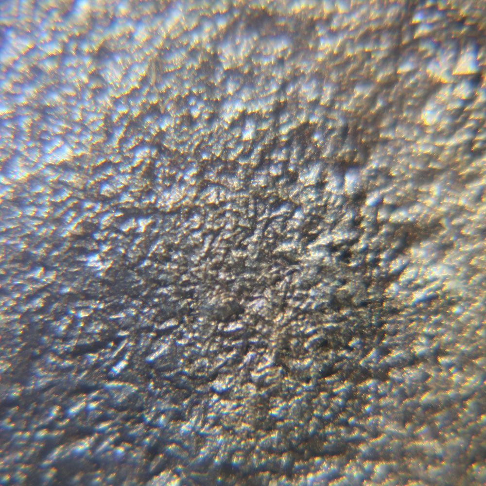 錫 22.2%、銅 77.8%、#36 ニュートンの金属鏡 僅かに収縮 金属とガラスの中間のような感じ 脆いが金属的な加工性もまだある、僅かに黄色、大きさ1mmぐらいのうろこ状の模様 |