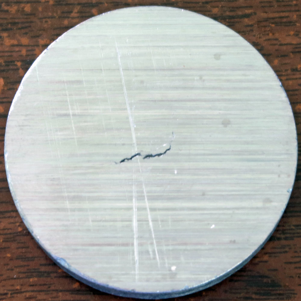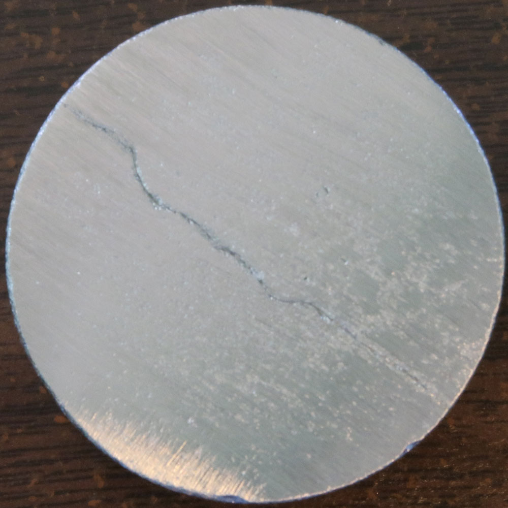 #28 : 錫 37.7%、銅 62.3% 国友一貫斎の金属鏡 (技術) 砂型、2度吹き、低温鋳造、脱ガス処理、方向性凝固、押し湯 (欠陥) ひけ割れ |