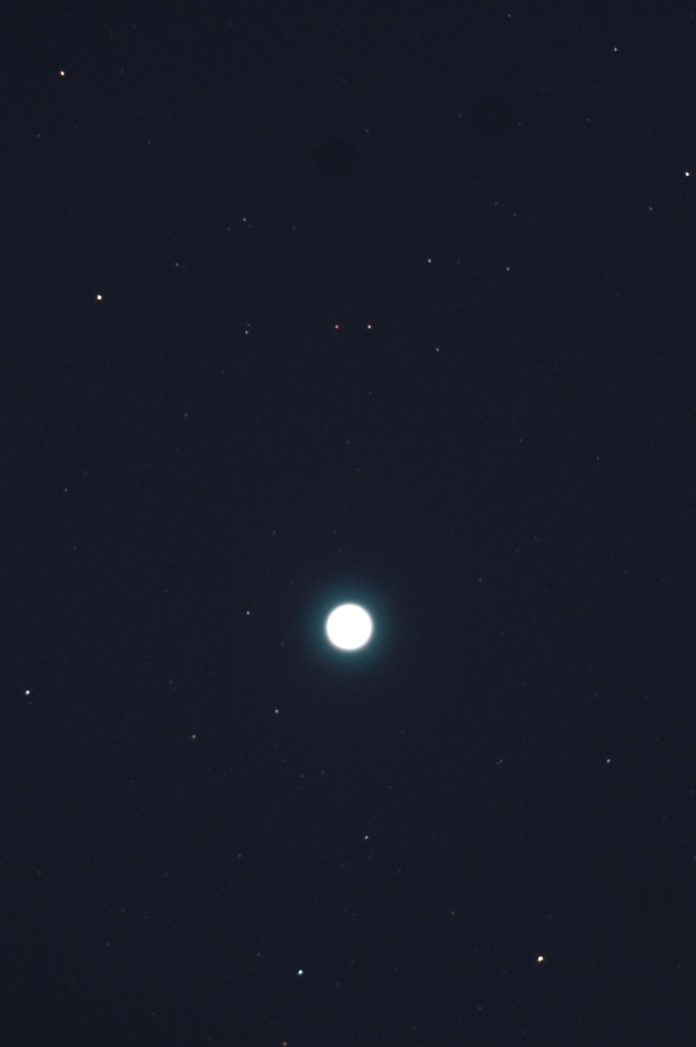 200%にトリミング。彗星は思った以上に明るく、構造は露出オーバーで何も写っていません。満月で霧がかかって、雲が迫る中での撮影でした。 スケッチもあわせてご覧下さい。17Pホームズ彗星のスケッチ