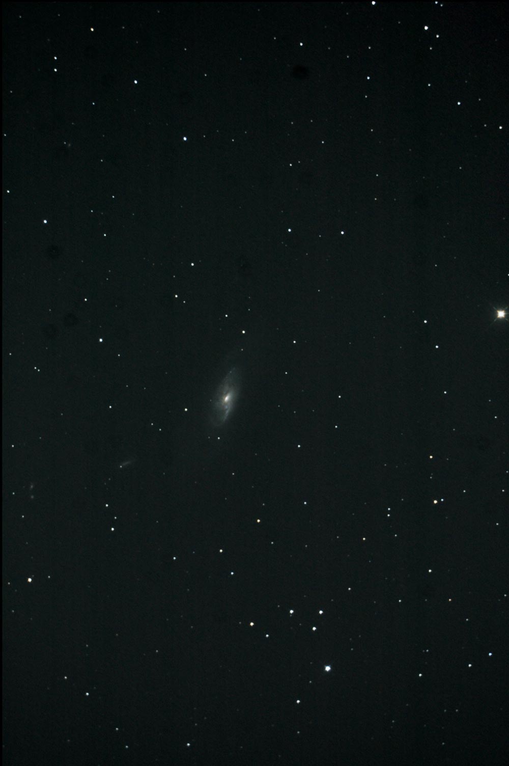写真右下の銀河がM65、左下の銀河がM66、そして上の銀河がNGC3628です。 これらの銀河はお互いにひとかたまりになっていて「M66銀河群」とよばれています。 NGC3628は銀河を真横から見ており暗黒帯を見ることが出来ます。 スケッチもあわせてご覧下さい。M65のスケッチ、M66のスケッチ
