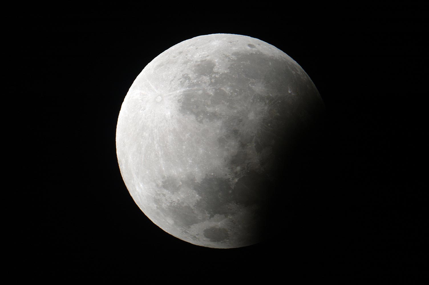 当日の仙台は大雨洪水警報が出る程の雨天。撮影は諦めていました。 しかし3時頃天気を確認すると、快晴。慌てて車を走らせ観測所に行きました。 食分0.189という部分月食でしたが、思いのほか欠けていて、十分楽しめました。